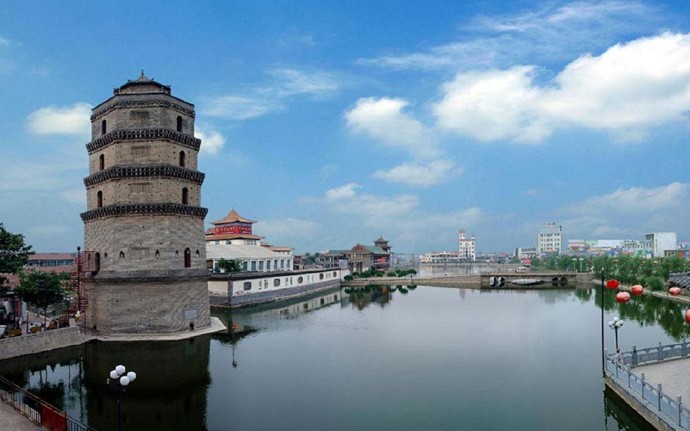 永豐塔四面環(huán)水,塔身故有所傾斜,明、清曾多次修繕。1990年,全縣人民集資捐款18萬元,對該塔進行了維修,風采更為迷人。