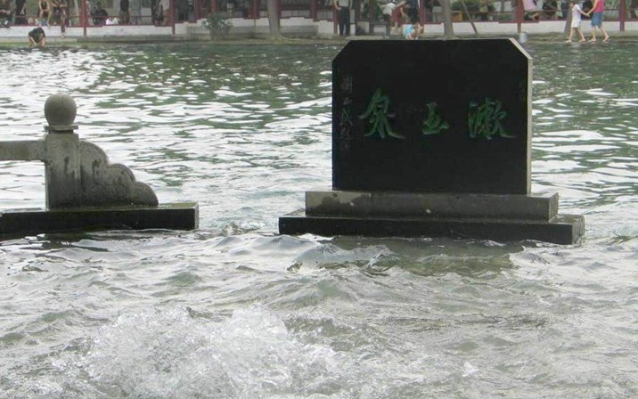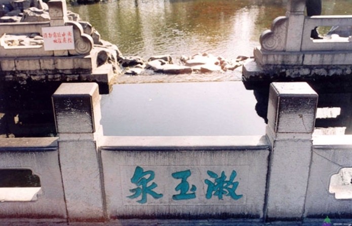 漱玉泉,金《名泉碑》、明《七十二泉詩》、清《七十二泉記》均著錄。在柳絮泉東側(cè),為一長方石砌水池,周飾石雕欄桿。池內(nèi)北壁鑲嵌“漱玉泉”刻石,為濟南當代書畫家關友聲1956年書寫。“漱玉”一名由“漱石枕流”(《世說新語•排調(diào)》)一詞演化而來。相傳,宋代杰出詞人李清照曾于此掬于梳妝,填詞吟詩,她的作品《漱玉詞》即以此泉命名。