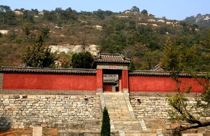 九女堂山東面,是一座赫紅色的山巒,名叫“紅山”,山中泉澗縱橫,林木茂盛,風(fēng)景格外幽美。建國初期的五十年代,紅山子村就是國務(wù)院命名的山區(qū)綠化先進(jìn)單位。早在古代,這里就被當(dāng)成風(fēng)水寶地,明代魯王宗室安丘王及其子孫的墓陵就選建在這里。這片陵墓群處在四面環(huán)山的山坳里,共三座大墓,呈鼎足形排列。其中兩座封土完整。最大的一座為園丘形,封土直徑達(dá)80米;另外一座封土東西寬24米,南北長40米,斜面坡高20米。還有一座已為平地,村民在其上耕地下陷,發(fā)現(xiàn)石砌墓室,墓中有一墓志銘,上蓋銘文題為:“魯府安丘王鎮(zhèn)國將軍壙志銘”,為篆書淺刻。銘文記載,墓主人是明太祖朱元璋的六世孫、安丘王朱陽釜的第三子、鎮(zhèn)國將軍朱當(dāng)沿。據(jù)《兗州府志•天潢志》記載,朱元璋封他的第九個(gè)皇子朱檀為魯王,于兗州立國,死后謚為“荒王”;第二代魯王是靖王朱肇?zé)?。宣德二?1427年),靖王封其第一庶長子朱泰坾為安丘王,謚號(hào)“靖恭”。朱泰坾之子朱陽釜為第二代安丘王,謚號(hào)“莊簡”,朱當(dāng)沿就是安丘莊簡王朱陽釜的第三子。成化二年(1466年)六月受封為鎮(zhèn)國將軍,死后歸葬于兗州魯府東北的屬地九仙山中。其余兩座墓冢因未發(fā)掘,尚不知墓主人是誰。1977年12月23日,墓群被定為“明安丘王墓群”,列為山東省重點(diǎn)文物保護(hù)單位。