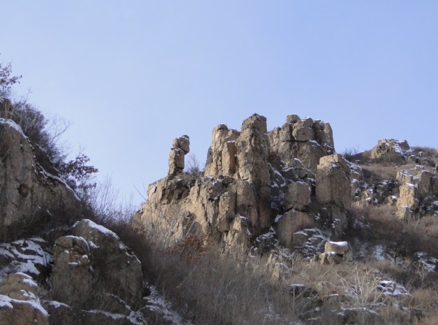 3、4月份,華北大地還籠罩在殘冬的寒意中時,大青山已隨著融雪的溪水,透露出春意。這是受溫帶海洋性氣候的影響,形成區(qū)域性的小氣候。進(jìn)入5月,滿山的照山白、夏杜鵑和野薔薇和不知名的野花蔓草,使山川谷壑飄溢著一縷縷谷蘭麝香,與奇峰幽谷相映襯。近百種樹木繁茂成林,森林覆蓋率達(dá)到90%以上,舉目望去的滿山青色使大青山因而得名。