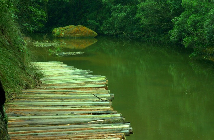 說到古道,其實我國歷史上的古道有很多種。其中一種是官道、大道,比如古人灞橋送別的古道,可以行車,寬大得很;所謂“長亭外,古道邊”,大概便是如此。有些是關(guān)外的大道,如陽關(guān)古道,荒涼曠遠,像《陽關(guān)三疊》中的景象展現(xiàn)眼前。西風瘦馬相伴的山野古道,小而崎嶇。水項古道便是如此。 我們穿行于這條斑駁的古道上,路其實已不成為路,崎嶇、坎坷。兩旁茂盛的竹林顯得有些黑色,同行的“驢”友說這竹子可能得了病,言語中透著股無奈與擔憂。沿途我們偶爾還能看見隨意廢棄的小工棚,由此不難看出此處山民當年艱辛的活動足跡。零零星星的,我們還見到有山民肩扛三四根竹子不辭辛勞地往來于兩地,真是想象不出當年閩侯那一側(cè)的山民穿越古道來山腳下趕圩的情景是何等熱鬧。