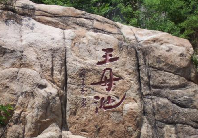 環(huán)山路東首坐落著王母池。王母池是一組依山傍水、高下相間、玲瓏緊湊的古代建筑群。《泰山述記》記載:“王母池本名‘瑤池’,俗名王母池。池上為群玉庵,祀王母,下臨虬在灣,前有飛鸞泉。”《岱史》也說:“黃帝建觀岱岳,遣女七人,云冠羽衣,修奉香火,以迎西王母,故名。”黃帝之事,荒遠難稽,但三國時曹植“東過王母廬”的詩句,即已足見王母池由來久矣。