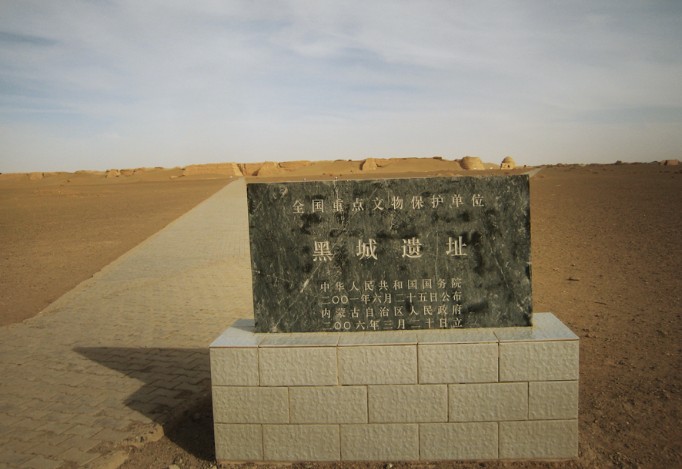 黑城遺址位于內(nèi)蒙古額濟納旗達來呼布鎮(zhèn)東南25公里處,是古絲綢之路上現(xiàn)存最完整、規(guī)模最宏大的一座古城遺址。該城建于公元九世紀的西夏政權時期。公元1372年明朝大將馮勝攻破黑城后遭廢棄。至今城內(nèi)還埋藏著豐富的西夏和元代等朝代的珍貴文書。近年來,由于周邊地區(qū)沙化嚴重,流沙從東、西、北三面侵蝕黑城,許多遺址已埋于沙下。文物保護工作者呼吁有關部門盡快行動起來,搶救性保護黑城遺址。