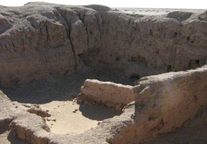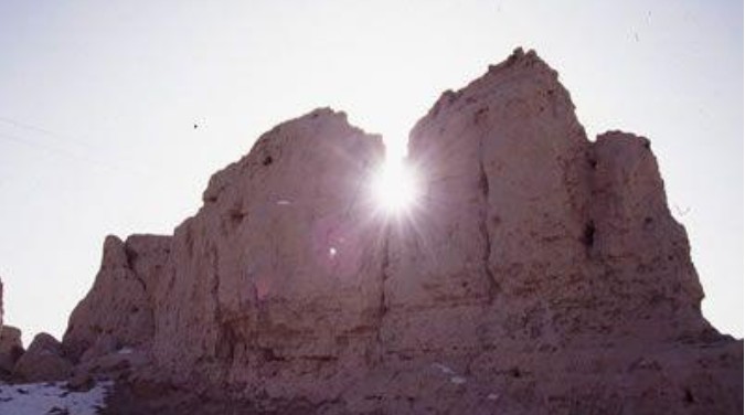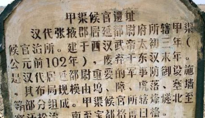 甲渠候官遺址俗稱破城子,位于額濟(jì)納旗南24公里,納林、伊肯河之間的戈壁灘上。為漢代居延都尉西部防線甲渠塞之長(zhǎng)——甲渠候駐所。發(fā)掘前,遺址大部分為砂礫掩沒(méi)。往西300米,南北排列“一”字形烽燧和雙重塞墻遺跡。