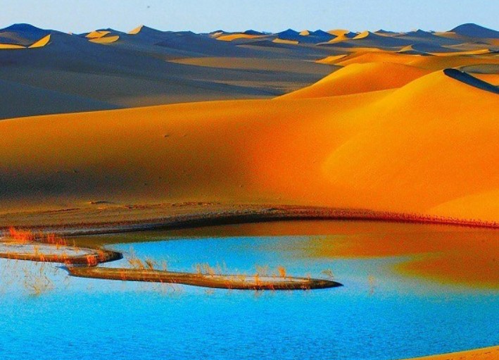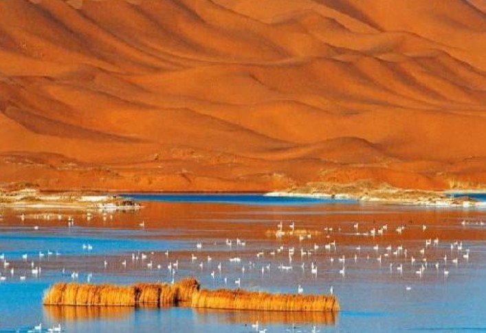 騰格里沙漠天鵝湖已成為阿拉善盟開展沙漠探險(xiǎn)和生態(tài)觀光的最佳旅游地。