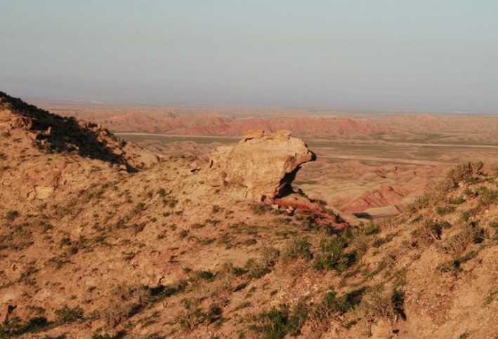 關于這幾處景致,當?shù)厝司幜撕苊赖墓适拢耗切┖芏鄬訉酉喁B的山峰就像經(jīng)書,那是唐僧師徒四人歷經(jīng)千辛萬苦取回來的,特意存放在這里,還派孫悟空守護。天性活潑調(diào)皮的猴兒怕自己寂寞,就帶著青蛙、老鷹、駱駝與自己做伴。豬八戒兄弟情深,不忍讓師兄獨自留守這里,于是也隨后跟來了。編故事的人一定很熱愛額日布蓋這個地方,才有了這樣富有想象力的故事,其中寄托的美好情感不言而喻。