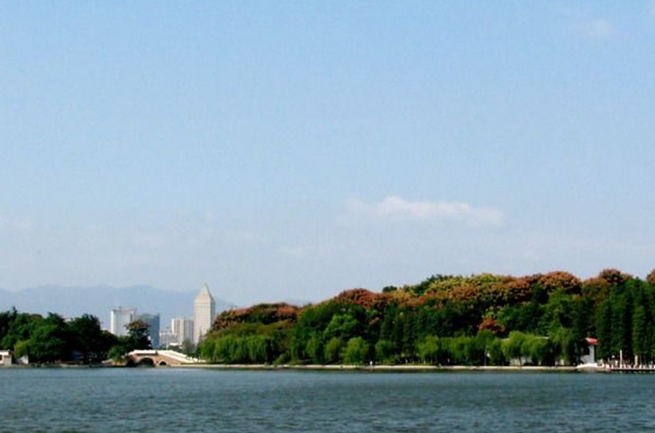 菱湖與蓮湖通連(中間是湖心路),在安慶市東北隅,方圓共八平方公里。舊時,以盛產(chǎn)菱藕和魚蝦著稱。原是一片天然湖泊,湖中有小島??滴鹾笃冢诰蚩滴鹾?,后擴建成游覽勝地,已有二百六十多年的歷史。舊有明史可法駐扎安慶時勒石“宜城天塹”石碑,現(xiàn)有清代大書法家鄧石如精美石刻。1921年在驚動全國的安徽省“六.二”學(xué)運中,與軍閥斗爭而犧牲的姜高琦、周肇基及周妻黃家馥合葬于湖內(nèi)東北隅,并建有紀(jì)念堂和血衣亭,為人憑吊。紀(jì)念堂壁上還刻了三人石像,每年六月二日要在亭中展覽姜烈士血衣。被毀于兵災(zāi)。現(xiàn)姜周烈士墓和血衣亭已修復(fù)。菱湖在歷史上是太平天國安慶保衛(wèi)戰(zhàn)的古水戰(zhàn)之地。1861年4月,英王陳玉成在第二次援救安慶時,率一萬余精兵從湖北趕到安慶集賢關(guān),在菱湖北岸修筑營壘十三座。城內(nèi)太平軍守將葉蕓來也出城在菱湖南岸修筑營壘五座,隔湖遙相呼應(yīng)。那時的菱湖東通石塘湖與破罡湖相連,可直達樅陽。