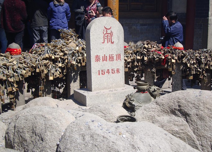 四周圍以石欄,是泰山的最高點(diǎn),石上有南陽王均于1921年題寫的“極頂”二字。西北側(cè)有“古登封臺”碑,古代帝王登山祭天,就在此處設(shè)置祭壇。玉皇頂傲視群雄,亭立峰巔,極目四望,確有“一覽眾山小”之感。