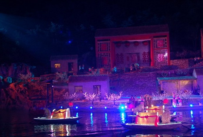 劇場(chǎng)以觀眾為中心,前后運(yùn)行,360度旋轉(zhuǎn),四周為不同形式的大舞臺(tái),山水相連,親近自然,觀眾坐不離席就可以從各個(gè)角度欣賞精彩節(jié)目。演藝聘請(qǐng)頂尖編導(dǎo),陣容強(qiáng)大,演員達(dá)600余人。由國(guó)家一級(jí)文藝、雜技等著名演員為觀眾呈現(xiàn)驚險(xiǎn)刺激、精彩絕倫、震撼人心的夢(mèng)幻視覺(jué)盛宴,使未曾走出國(guó)門(mén)的人能在威??吹匠咕S加斯之外看不到的世界頂級(jí)特技表演。演出精彩不斷,無(wú)與倫比,是迄今國(guó)內(nèi)最精彩的山水實(shí)景演出。