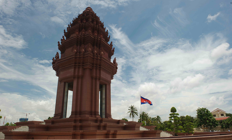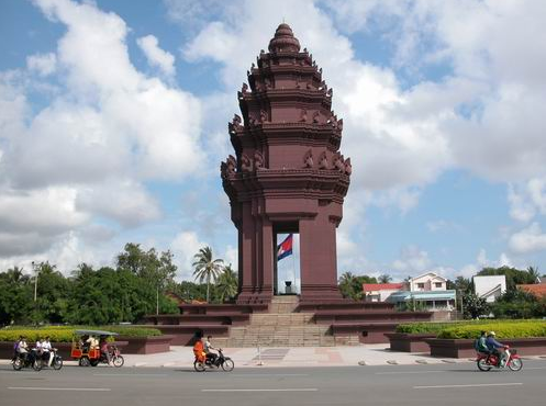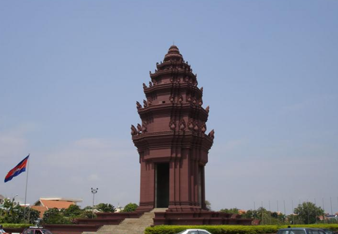 獨(dú)立紀(jì)念碑(Independent Monument)高高地矗立在諾羅敦大道與西哈努克大道交會(huì)的十字路口上。為慶祝脫離法國殖民政權(quán)和紀(jì)念在戰(zhàn)爭中為國犧牲的英勇烈士而建。由柬埔寨著名設(shè)計(jì)師凡•莫尼旺設(shè)計(jì),于1958年動(dòng)工興建,1962年11月落成。整座紀(jì)念碑底座寬36米、高37米。