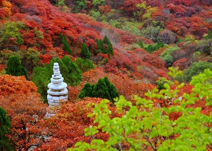 登上石門山東頂,極目西眺,屏翠迭嶂,逶迤跌宕。據(jù)說自清嘉慶年間,石門坊始見黃櫨,入民國后,黃櫨逐漸成林,布滿山巒。每當(dāng)深秋,霜打櫨葉,遍山紅透。間以蒼松翠柏與黃葉映襯,遠遠望去,如潑紅嵌黛,妍麗多姿。重陽前后月余間,游人絡(luò)繹不絕,爭賞紅葉,得以“三月十二開山祭,九月重陽看楓林”,領(lǐng)略“霜葉紅于二月花”的獨特景觀。近年來,每逢農(nóng)歷九月九日,版權(quán)所有山東聊城聊之旅國際旅行社有限公司,轉(zhuǎn)載必究!臨朐縣政府舉辦“紅葉節(jié)”。