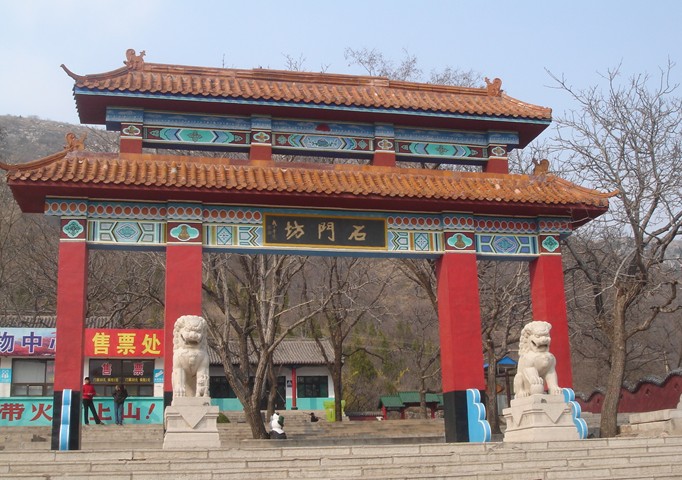石門坊,亦稱石門房,又名石門山,位于臨朐城西二十多華里,山勢曲結(jié)南向,兩峰對峙如門,故名。奇觀天成的石門“晚照”,居臨朐八大景之首,早在殷商時期,即被人們所慕仰距今已有三 千年的歷史。殷商臨朐之城為逄國,石門山為逄國轄地。逄王(伯陵)為朝廷忠臣,人們?yōu)樽纺钇涔Φ?便在 風(fēng)景秀麗的石門山立廟祀之。到了唐代,增建廟宇,刻佛像,已成為 名勝之地,黃冠緇流,騷人墨客,云集于此,遁跡觴詠。