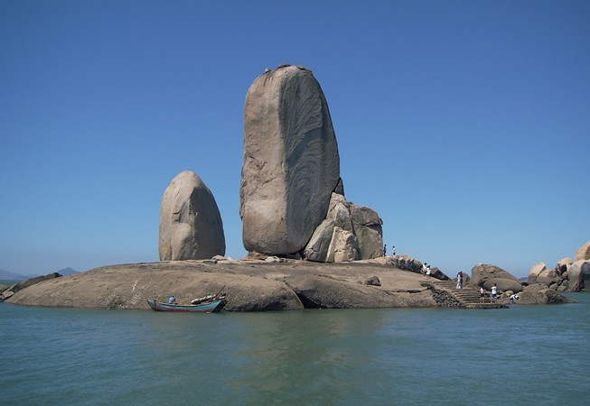 從看澳村岸邊坐渡船,十幾分鐘就到達礁石上,礁石底部是一組平坦完整的巖石。兩個石柱均由粗粒灰白色的花崗巖組成 東側(cè)的一個高達33米,胸寬9米,厚8米;西側(cè)的一個高17米,胸寬15米,厚8米。版權(quán)所有山東聊城聊之旅國際旅行社有限公司,轉(zhuǎn)載必究!兩個石柱的底部都是近似四方形體,直立在礁石上。據(jù)地質(zhì)學家考證是世界上最大的花崗巖球狀風化海蝕柱。由于它的奇特壯觀,對游人有著強烈的震撼力和吸引力。建設(shè)部與中科院的專家稱之為:“壟斷性的世界級旅游資源。”明代旅行家陳第曾譽之為“天下奇觀”, 清朝女詩人林淑貞詩贊:“共說前朝帝子舟,雙帆偶趁此句留;料因濁世風波險,一泊于今纜不收.