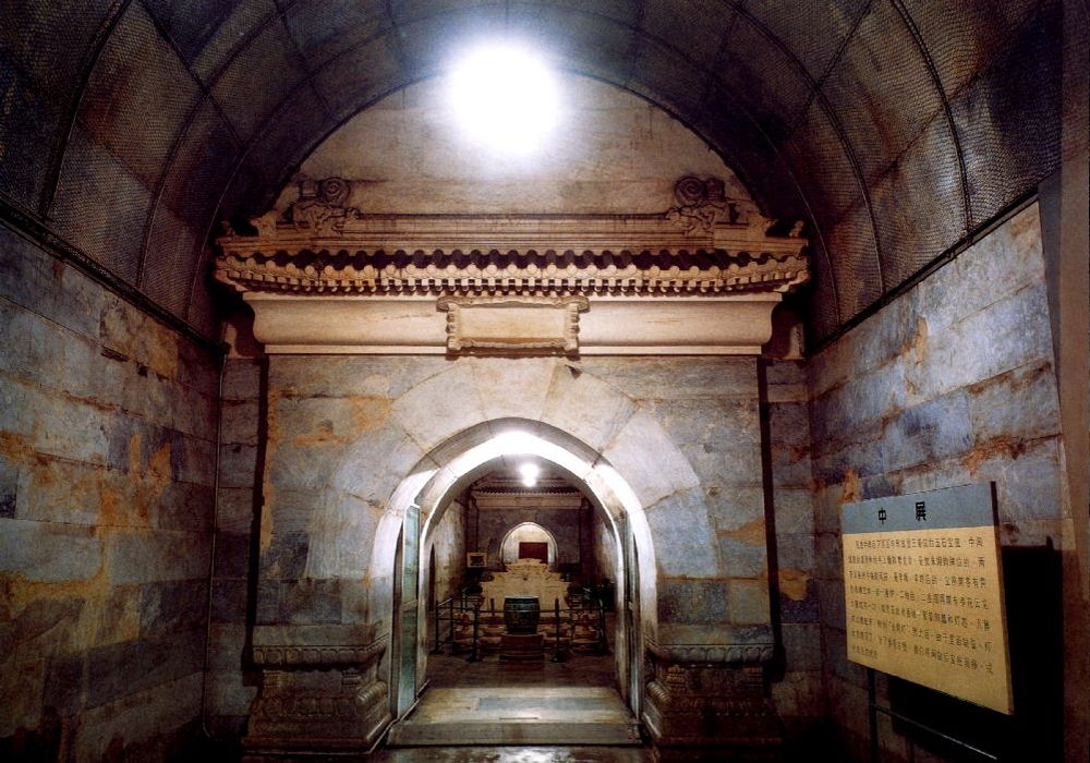 明思陵,位于陵區(qū)西南隅的鹿馬山(又名錦屏山或錦壁山)南麓,是明朝最后一帝朱由檢(年號崇禎)及皇后周氏、皇貴妃田氏的合葬陵墓。