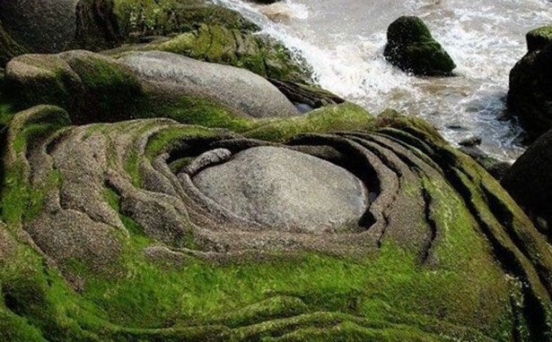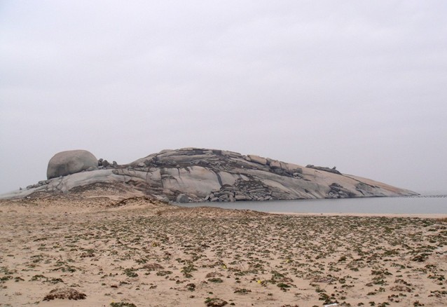 又稱石人壇,是一巨型的男性裸體象形石,在島南面塘嶼的南端。石人頭東腳西仰臥,頭枕沙灘,足伸東海,身長330米,體寬150米,胸高36米,體巨大,比例勻稱。下身殘存一柱狀化巖體,斜斜上翹,長4米多,酷似陽具,為漁婦祈子的膜拜物。石人周圍還有風(fēng)動石、鑼鼓石、香爐石、八仙圍棋石等?!?/p>