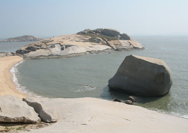 在島南部的山利村前,由5個相連小峰組成,距縣城約10公里,在方圓0.6平方公里的低丘陵中,遍布著球狀風(fēng)化花崗巖體,體碩大,形態(tài)各異,其中奇特與象形的山石景觀有30多處。如綿羊峰的“鴛鴦理翅”、“新舊悟空”、“石上榕樹”、“綿羊臥崗”,鱷魚峰的“花豹巡山”、“八戒亮相”、“熊豚對峙”、“蒼鷹雄視”,仙女峰的“唐僧問路”、“西域頭陀”、“一孔窺天”,神雕峰的“烏龜?shù)缴?rdquo;、“情人相見”、“八戒養(yǎng)神”,青蛙峰的“澳洲袋鼠”、“馬飲雞啄”、“金猴回首”和“企鵝觀狗”等。石景周圍,遺存的堡壘、壕溝縱橫交錯。