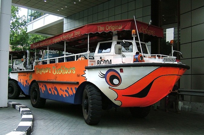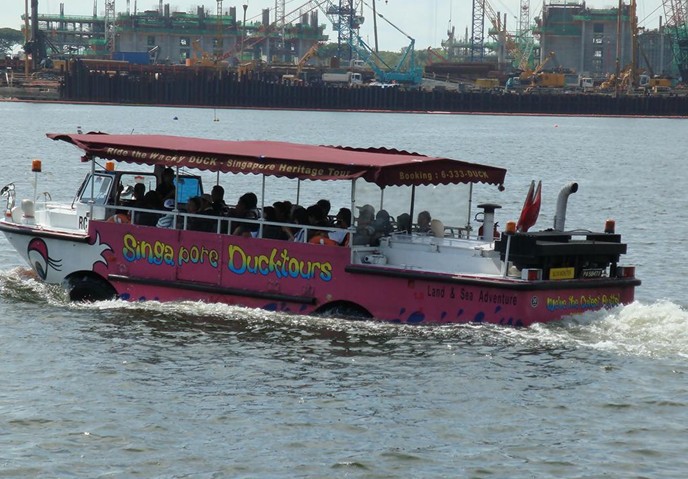 “鴨子船”極受游客歡迎,香港人愛把乘“鴨子船”沿新加坡河的觀光稱為“游車河”,在新達(dá)城乘坐鴨子船,陸地將經(jīng)過世界大戰(zhàn)紀(jì)念碑,在水上欣賞薛爾思橋及魚尾獅的噴水景觀。