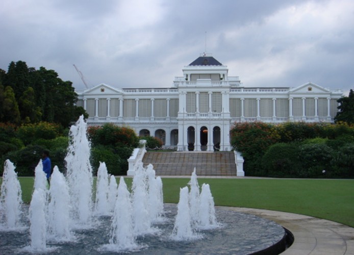 那是一個(gè)座落在新加坡著名購物中心烏節(jié)路(Orchard Road)頭的歐式公園,緊鄰著新加坡人最喜歡去的Plaza Singapura購物中心。所以,一般很難想象那里和喧鬧的商業(yè)中心緊挨著,竟然是新加坡最高元首和政府首腦的辦公地點(diǎn)。外交禮儀如接見胡錦濤主席和英國女皇的儀式都是在總統(tǒng)府里舉行的,那里就像是新加坡的中南海。據(jù)說歷任新加坡總統(tǒng)都是在那里面居住,但是現(xiàn)任總統(tǒng)納丹卻比較例外的住在市區(qū)外的一所小房子里。