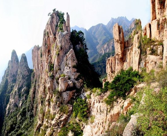 崮山奇峰怪嶺,崖懸壁峭,版權(quán)所有山東聊城聊之旅國際旅行社有限公司,轉(zhuǎn)載必究!崮頂高聳入云,四周常有云霧繚繞,故有“南崮北崮,隔天一步”之說。建國后封山育林,栽松植果,林地面積大增,喬木以黑松為主,隨著樹齡的增長,與崮山奇石相襯,觀賞價值在不斷提高。林海茫茫,山花漫漫,景觀引人入勝,于是每年春夏之時,游人絡(luò)繹不絕,已自發(fā)形成游覽景區(qū)。