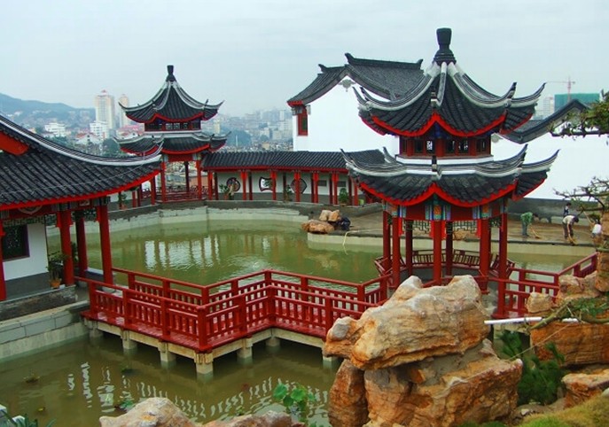毓璜頂公園位于芝罘區(qū)偏南的一座小山上的毓璜頂公園,因有玉皇廟而得名。毓璜頂松柏掩映,殿閣儼然,宛如一幅清秀淡雅的水墨畫,其主要建筑有小蓬萊坊、玉皇廟和玉皇閣。清光緒十九年重修玉皇廟時(shí),由文人雅士提議更名為毓璜頂。“毓秀鐘靈地不愛(ài)寶,璜琮璞玉山自生輝”的對(duì)聯(lián)鐫刻于玉皇廟紅漆大門之上,對(duì)聯(lián)的意思是說(shuō)大自然的靈秀之氣匯集于此,生出了各式各樣的美玉寶石。