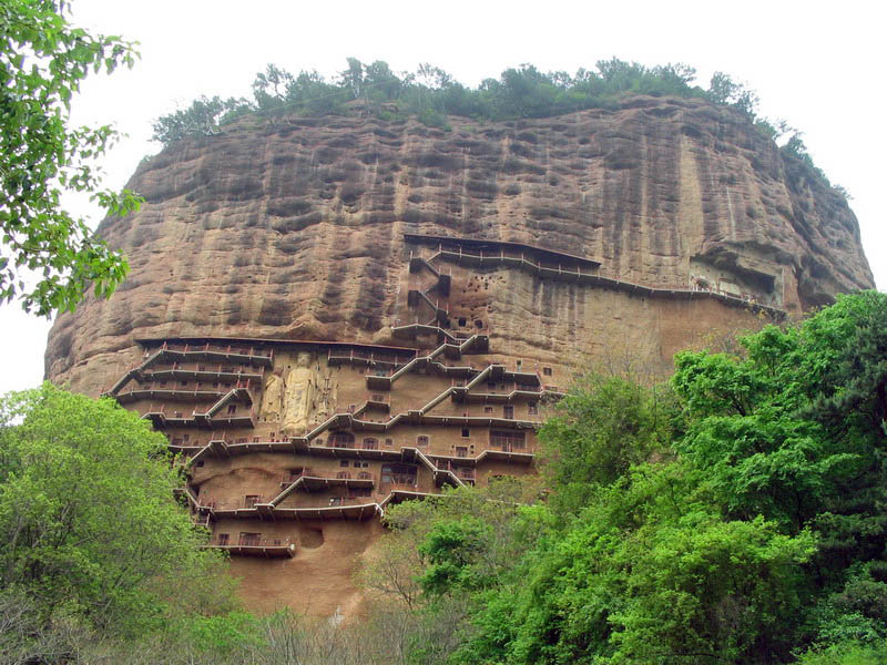 第16窟本尊釋迦立像高13.5米,而相清秀,英俊瀟灑。第17窟正中為菩薩裝的交腳彌勒坐像,高15.6米,窟小像大,咄咄逼人。