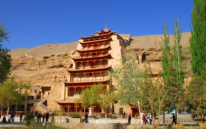 莫高窟地處絲綢之路的一個(gè)戰(zhàn)略要點(diǎn)。它不僅是東西方貿(mào)易的中轉(zhuǎn)站,同時(shí)也是宗教、文化和知識的交匯處。莫高窟的492個(gè)小石窟和洞穴廟宇,以其雕像和壁畫聞名于世,展示了延續(xù)千年的佛教藝術(shù)。