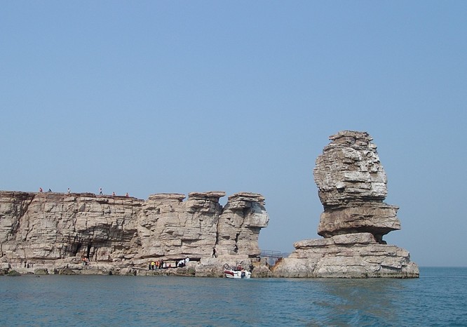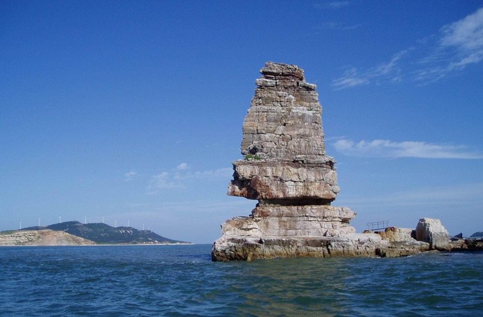 寶塔礁,因礁石似寶塔而得名,位于廟島西北處的犁具把島,高約21米,直徑約5米,其狀巍然,寶塔礁無論從哪個(gè)角度觀賞,都像一座挺立的巨塔,變換不同的位置,會領(lǐng)略出不同的天工神韻,讓人覺得處處皆奇。