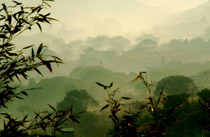 海陽云頂自然風(fēng)景旅游區(qū)位于海陽市盤石店鎮(zhèn)大莊村西側(cè),招虎山北麓。這里群山環(huán)抱,古樹參天,空氣清新,泉多水清,翠竹叢生,周圍4800畝山嵐至今保持著良好的生態(tài)環(huán)境,近千種動植物生機勃勃。尤其令人驚嘆的是這里竟然生長著500余畝郁郁蔥蔥的竹子。據(jù)林業(yè)專家稱,這片江北最大的竹林,起源于何時已無從考究。但在北緯37º地區(qū)能有如此規(guī)模的竹林,舉世罕見。