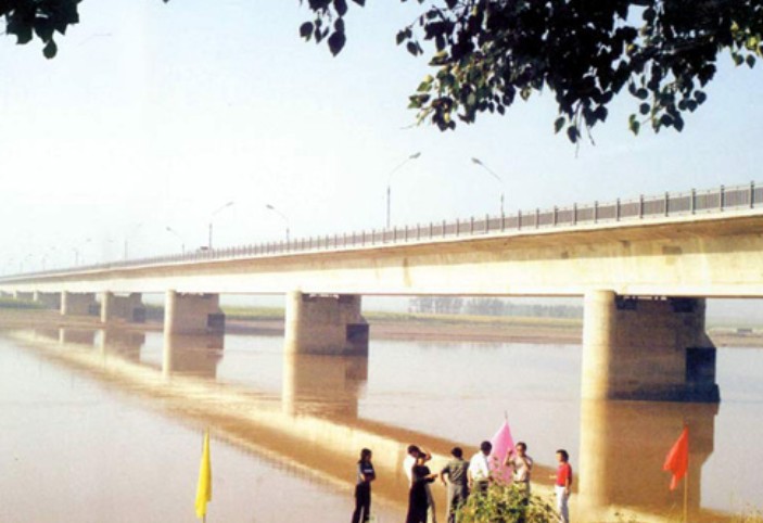 位于市南郊,它是從包頭市白云鄂博到陜西等省通衢的重要組成部分。大橋全長810米,主孔12孔,每孔跨徑為65米,橋面寬12米,下部由14墩臺組成,上部構(gòu)造為預(yù)應(yīng)力鋼筋混凝土箱式連續(xù)梁,采用最新工藝多點頂推法施工。上部結(jié)構(gòu)為3聯(lián)4孔65米預(yù)應(yīng)力鋼筋混凝土連續(xù)箱梁,跨徑組合為3*(4*65)+20米,1983年建成通車,是黃河中上游最大的橋梁之一。設(shè)計荷載汽車—20級;拖車—100級。