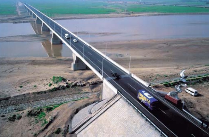 包頭黃河大橋擔(dān)負(fù)著連通包西公路(包頭—西安)的重任,新橋是內(nèi)蒙古自治區(qū)向世界銀行貸款建設(shè)項目,尚未竣工。新橋與舊橋相距百米。