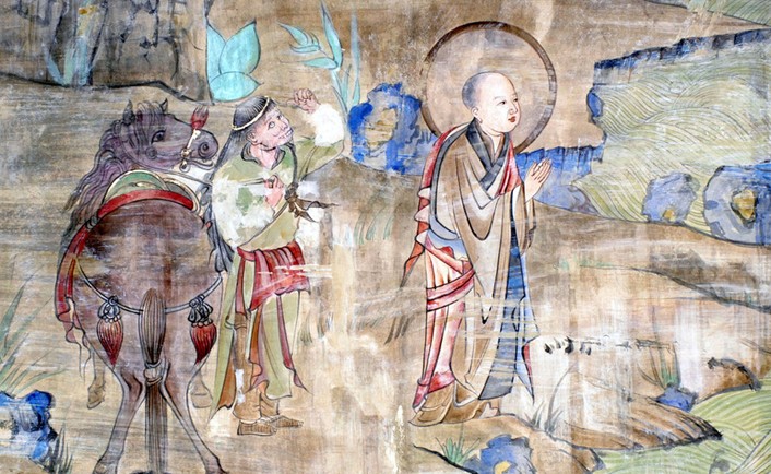 東千佛洞以內(nèi)容豐富的西夏窟見長,其密宗佛教壁畫可彌補莫高、榆林二窟之不足。壁畫內(nèi)容以密宗畫為主,并把《觀音經(jīng)變》、《涅?經(jīng)變》移到了主要位置。當(dāng)繪于西夏晚期密教盛行之時,充分體現(xiàn)了"西夏人遠宗唐法,不入宋初一筆,版權(quán)所有山東聊城聊之旅國際旅行社有限公司,轉(zhuǎn)載必究!妙能自創(chuàng),儼然自成一家"的獨特藝術(shù)追求和審美觀。其中西夏2窟規(guī)模最大,覆斗頂穿道式窟形,后室東西穿道兩側(cè)的兩幅色彩鮮麗的《水月觀音》各4.85平方米,技藝精湛,堪稱絕品。觀音眉清目秀,左手下垂,右手拿經(jīng)卷,悠然自若地端坐在金剛寶座上凝思遐想,身邊彩云環(huán)繞,山后數(shù)竿翠竹點綴出仙山勝景的清靜;金剛寶石座前潺潺流水,遠方天際高掛一句彎月,便點透了此畫意境-一《水月觀音》。河對岸唐僧身披錦藍袈裟,雙手合十向觀音膜拜。孫悟空手牽馱著經(jīng)卷的紅馬緊跟在后。和安西榆林窟西夏2、3、29窟的同類畫相似。版權(quán)所有山東聊城聊之旅國際旅行社有限公司,轉(zhuǎn)載必究!畫面右下方波濤洶涌的大海,云中站立帝王、天女、靈宮拜觀音,天女手持寶傘,后面有大力鬼王手持彩旗。整個畫面中的人物、山水合諧。是我國石窟寺壁畫藝術(shù)中反映唐僧取經(jīng)故事的珍貴資料。壁畫中的色彩和線描極為嚴謹工細,可以和榆林窟的《水月觀音》相媲美,堪稱西夏壁畫的精品佳作。