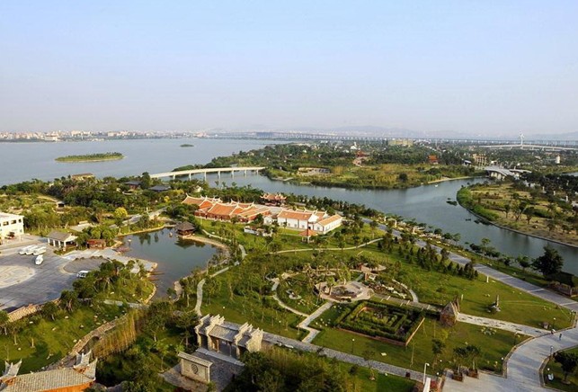 廈門園博苑的地址選在“華僑旗幟”陳嘉庚先生的故鄉(xiāng)——集美中洲島。園博園規(guī)劃片區(qū)總面積6.76平方公里,其中陸域面積3.03平方公里。主要包括園博園主展區(qū)、生態(tài)濕地公園、水景及水上運(yùn)動(dòng)、溫泉度假村等商業(yè)配套設(shè)施。園博園片區(qū)規(guī)劃以半島、島嶼的形式進(jìn)行總體布局,由九個(gè)島嶼和兩個(gè)半島組成。其中五個(gè)為展園島嶼,四個(gè)小島為生態(tài)景觀島。以此為基礎(chǔ),分期規(guī)劃建設(shè)東邊的自然原生島、西側(cè)的杏林苑、中部的教育之園、石文化園和北側(cè)的山林休閑園,形成一片中央公園式的大綠地。