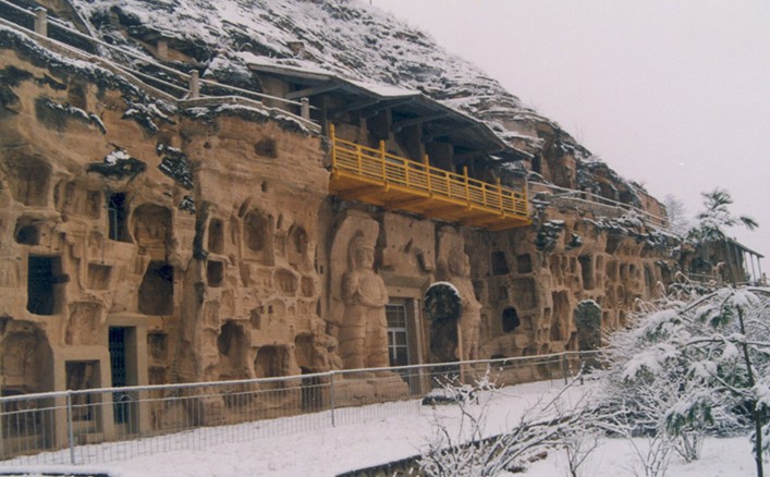窟龕因崖面自然形態(tài)分為上下兩層,以回廊石階貫通,布局有制,層次分明。特別是165洞窟高達(dá)14米,深15.7米,寬21.7米,規(guī)模宏大,全國(guó)罕見。文物保存完整,內(nèi)容豐富,其歷史、藝術(shù)、科學(xué)、旅游價(jià)值很高。是世界石窟藝術(shù)的珍品,這里背山面水,自然風(fēng)景典雅秀麗。春天姹紫嫣紅,鳥語花香;夏日泉水叮咚,涼風(fēng)習(xí)習(xí);秋季霜葉爛漫,碩果累累;冬至瑞雪紛飛,幽靜而壯觀,人文景觀獨(dú)特。石窟分上中下三層,其中以奚康生創(chuàng)建的一百六十五號(hào)窟為最大,它是以七佛為內(nèi)容的大型窟。七佛造像宏偉精湛,莊嚴(yán)肅穆,不失北魏造像的光彩和魅力。伴之七佛而雕造的彌勒菩薩、騎像菩薩、手持日月的阿修羅都是富有藝術(shù)感染力的成功作品。除此而外,還有240號(hào)窟的北周造像,顯示了敦樸厚重的風(fēng)度。北石窟寺以唐代窟最多,最有代表性的是建于武則天如意元年(公元692年)的32號(hào)窟??邇?nèi)的大小雕像面容豐腴,秀目含情,飄然欲動(dòng),姿態(tài)動(dòng)人,堪稱盛唐藝術(shù)精品,唐代造像在藝術(shù)上達(dá)到了新的成就??邇?nèi)還保存著隋、唐、宋、金、西夏、元等各代的題記150多則,是研究歷史、書法的珍品。題記確切記載了石窟的開鑿年代,為研究歷代社會(huì)生活和發(fā)展變化,提供了很有價(jià)值的文字資料。這些綿亙千余年的雕刻藝術(shù),凝結(jié)著勞動(dòng)人民的智慧,是古代藝術(shù)匠師們辛勤勞動(dòng)的結(jié)晶。為我們留下了豐富的精神財(cái)富?!”笔咚乱运聹系目啐愖顬榧校簿幪?hào) 282個(gè),窟群開鑿在高20米、寬 120余米的覆鐘山崖壁上,窟龕上下重疊多達(dá)3層。面向西,因周圍山崖石質(zhì)屬早白堊紀(jì)黃砂巖,砂質(zhì)均勻,膠結(jié)性能較好。造像可分為圓雕、半圓雕和浮雕等幾種。以北魏和唐代的最為精美。原窟龕內(nèi)均有彩繪壁畫或圖案裝飾,現(xiàn)絕大多數(shù)已剝落無存。