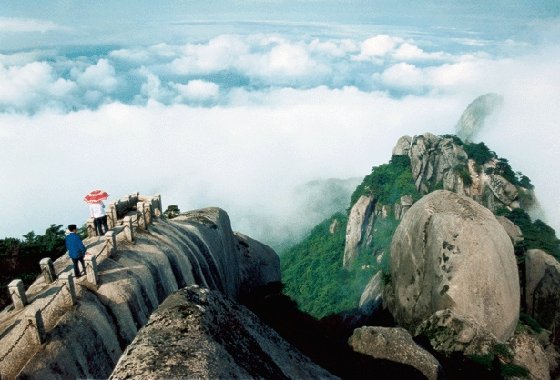 登上天池峰頂,可以領(lǐng)略一下“會(huì)當(dāng)凌絕頂,一覽眾山小”的氣概。這里視野寬闊無比,景色十分壯麗。是觀日出、云海、佛光、晚霞的最佳方位。天晴之時(shí),極目遠(yuǎn)眺,飛來峰、銜珠峰,五指峰,山連天際;煉丹湖如同一面銀光閃閃的鏡子被潛河、皖水兩條銀鏈夾在中間;大龍窩、后山、東關(guān)諸峰如同一個(gè)個(gè)土丘,盡收眼底。