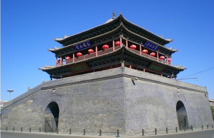 俗稱鼓樓,位于甘肅張掖市中心,東西南北四條大街交匯于此,是河西走廊現(xiàn)存最大的鼓樓。樓于明正德二年(1507年)建在一座磚包的高臺上,臺基寬32米,高9米,基座至樓頂30多米。樓為三層木構(gòu)塔形,飛檐翹角,雕梁畫棟,結(jié)構(gòu)精巧,造型雄偉壯觀?;?ldquo;十”字洞通向東西南北與四條大街銜接。版權(quán)所有山東聊城聊之旅國際旅行社有限公司,轉(zhuǎn)載必究!樓上四面懸有匾額:東為“金城春雨”,西為“玉關(guān)曉月”,南為“祁連晴雪”,北為“居延古牧”?,F(xiàn)鼓樓東南角懸唐鐘一口,是以銅為主的合金鑄成,工藝精湛,渾厚雄偉。鐘高1.3米,口徑1.15米,重600公斤。鐘身飾有飛天及朱雀、玄武、白虎、青龍圖案。此鐘古代多用來報(bào)時(shí)或火災(zāi)報(bào)警。