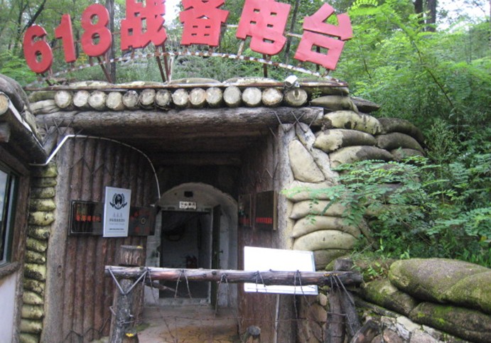 618戰(zhàn)備電臺,原為山東人民廣播電臺戰(zhàn)備臺,是華東地區(qū)規(guī)模最大、保存最完整的一處戰(zhàn)備電臺。它是二十世紀(jì)六十年代為適應(yīng)國防需要,由時任濟(jì)南軍區(qū)司令員的楊德志將軍親自選址興建的,位于山東省淄博市沂源縣魯村鎮(zhèn)峨峪村北山中。海拔高度400米,相對高度200米,占地面積229畝,發(fā)射功率50千瓦,能夠覆蓋淄博、臨沂、濰坊、泰安等13個市縣。電臺機(jī)房設(shè)在山中坑道內(nèi),坑道總長470米,施工面積2820平方米。