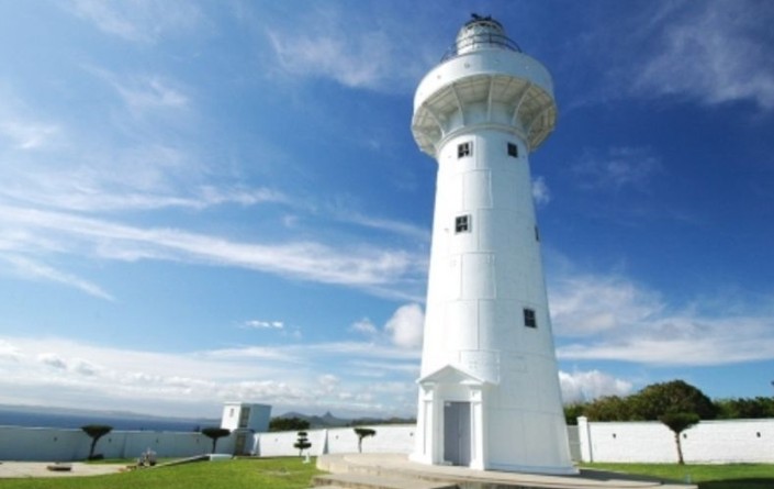二次大戰(zhàn)時被美軍炸毀,戰(zhàn)后依原建筑修復(fù)迄今。塔身全白,為圓柱形,為白鐵制,塔高24.1米,塔頂換裝新式大型四等旋轉(zhuǎn)透鏡電燈,經(jīng)過大型旋轉(zhuǎn)透鏡后,光力為1,800,000支燭光,每十秒一閃,照射距離達(dá)二十七點(diǎn)二浬,是目前臺灣光力最強(qiáng)的燈塔,被稱為“東亞之光”。