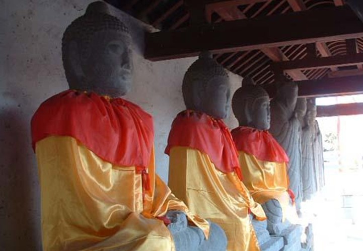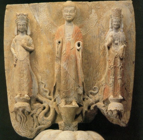 1962年,在石佛前田中發(fā)現(xiàn)石質(zhì)佛座1塊,龕長(zhǎng)36厘米,寬35厘米,厚11厘米,刻“大齊天統(tǒng)元年歲次丁亥四月一日辛丑朔比丘?曇進(jìn)兄弟二人敬造”。天統(tǒng)元年為公元565年。1977年又在寺院舊址中出土1塊高浮雕一佛二菩薩造像碑,系青石質(zhì),呈蓮瓣形,頂端左右雕有飛天6個(gè),中間石佛像高65厘米,其兩側(cè)菩薩像各高47厘米。造像屬唐代風(fēng)格,當(dāng)屬寺內(nèi)舊物,現(xiàn)存于臨淄區(qū)文物管理所內(nèi)。1984年7月公布為市級(jí)重點(diǎn)文物保護(hù)單位。石佛堂北魏石佛 在臨淄區(qū)城關(guān)鎮(zhèn)石佛堂村北側(cè)有殘破佛堂3間,系磚、石、木結(jié)構(gòu),灰瓦覆頂,一門(mén)二窗,內(nèi)飾壁畫(huà),立有石佛4尊。堂室中央置彌勒佛1尊,高1.14米,寬0.45米,厚0.24米,背倚刻有40個(gè)佛像的石屏;西間石佛3尊,缺首,雕在一塊蓮瓣?duì)钍辽?,石屏刻?5個(gè)佛像,其上端左右雕立式飛天和蟠龍,結(jié)構(gòu)謹(jǐn)嚴(yán),組為一體。