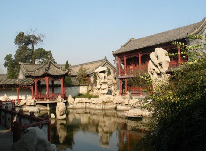 出館往東就是石刻園,它是在王漁洋紀(jì)念館(忠勤祠)東跨院的基礎(chǔ)上與古代園林建筑相結(jié)合修建的。石刻園可謂園中有園,景中套景,徜徉其中,景色秀麗,心曠神怡,氣象萬(wàn)千。元代禮部尚書(shū),散曲家張養(yǎng)浩的“蒼云”“振玉”兩巨型太湖石名列水池中間,國(guó)家一級(jí)石刻“水月松風(fēng)”亦在園中陳列,讓人觀后猶如走進(jìn)了蘇州園林美不勝收。二樓是書(shū)畫(huà)名家陳列館,有歐陽(yáng)中石、李鐸、魏傳統(tǒng)等書(shū)畫(huà)名家書(shū)寫(xiě)的王漁洋的詩(shī)詞佳句,或遒勁有力或妙筆生輝或惟妙惟肖,讓人倍感震撼,從中對(duì)王漁洋先生的詩(shī)詞歌賦也有了更多的了解。
