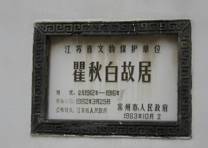 瞿秋白故居,于1982年3月25日由江蘇省人民政府公布為江蘇省文物保護(hù)單位。經(jīng)中共中央宣傳部批準(zhǔn)。于1985年6月18日瞿秋白同志英勇就義50周年紀(jì)念日正式對外開放。紀(jì)念館門樓下的金字橫匾“瞿秋白同志紀(jì)念館”系鄧小平同志書寫。基本陳列《瞿秋白生平事跡展覽》在西院,《瞿秋白故居陳列》在東院。并推出《紀(jì)念瞿秋白書畫展》等專題陳列。