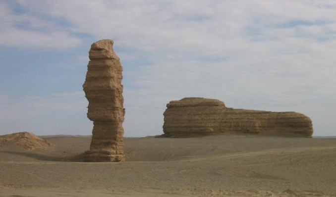 烏爾禾風(fēng)城又稱魔鬼城,位于新疆維吾爾自治區(qū)克拉瑪依市烏爾禾區(qū)境內(nèi),距克拉瑪依市東北90千米,烏爾禾鄉(xiāng)東約5千米,東經(jīng)85°19′,北緯46°6′(217國道310千米以東),地面海拔高程300--500米,平均海拔380米。烏爾禾呈北西一南東走向,長約5千米,寬約3千米,面積約15平方千米,由一系列近北西一南東走向的孤立臺(tái)地組成。 臺(tái)地高10—50米,由廣泛出露的白堊系下統(tǒng)吐谷魯群構(gòu)成,主要巖性為淺水湖泊相灰綠色細(xì)砂巖與棕色、褐紅色泥巖、砂質(zhì)泥巖,吐谷魯群略呈水平狀,向東南方向微傾,傾角約5度。屬典型的雅丹地貌,是受風(fēng)力和流水作用的影響形成的。在這一大片區(qū)域內(nèi),分布著大量奇形怪狀的巖山,可以給人想象成各種詭異的事物,而且風(fēng)刮過這些巖石的時(shí)候,因?yàn)榉植嫉年P(guān)系,會(huì)發(fā)出鬼哭狼嚎的聲音,所以叫做魔鬼城。這種丹霞地貌在戈壁中很常見。
