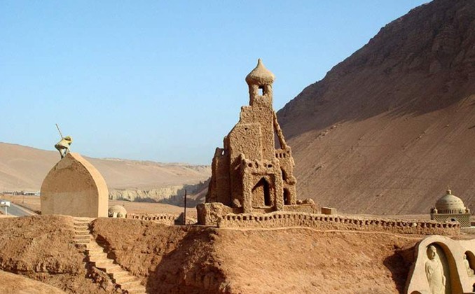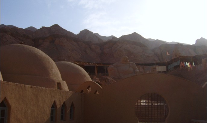唐僧取經(jīng)群塑形態(tài)生動(dòng),表情逼真。群塑是1989年修造的。來(lái)此觀瞻照相的中外游人接連不斷,是火焰山新辟的旅游景點(diǎn)之一。遺憾的是群塑人為的被高高的鐵柵欄團(tuán)團(tuán)圍住,形同囚犯,令游人駐足長(zhǎng)嘆。