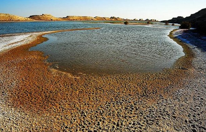 羅布泊“地下死海”主要分布在東北部的涸湖盆地底,表面是堅(jiān)硬的鹽殼,當(dāng)挖一個(gè)2m米深的洞穴后,就可看見(jiàn)“地下死海”的真面目。用棍棒觸攪穴中水后,提離水面都會(huì)結(jié)上一層白色的鹽晶體。與死海不同的是,這里的水深藏在巖石或土層縫隙中,鑿開(kāi)一洞穴后,水就嘩嘩涌集一起。