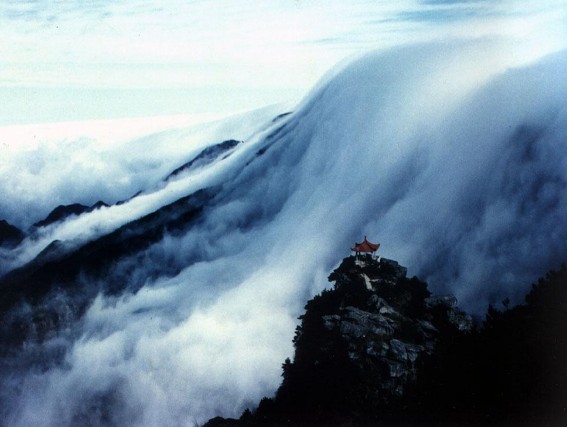 玉屏樓觀南海,清涼臺望北海,排云亭看西海,白鵝嶺賞東海,螯魚峰眺天海。由于山谷地形的原因,有時(shí)西海云遮霧罩,白鵝嶺上卻青煙飄渺,道道金光染出層層彩葉,北海竟晴空萬里,人們?yōu)樵坪C谰岸舷卤疾?,謂之“趕海”。