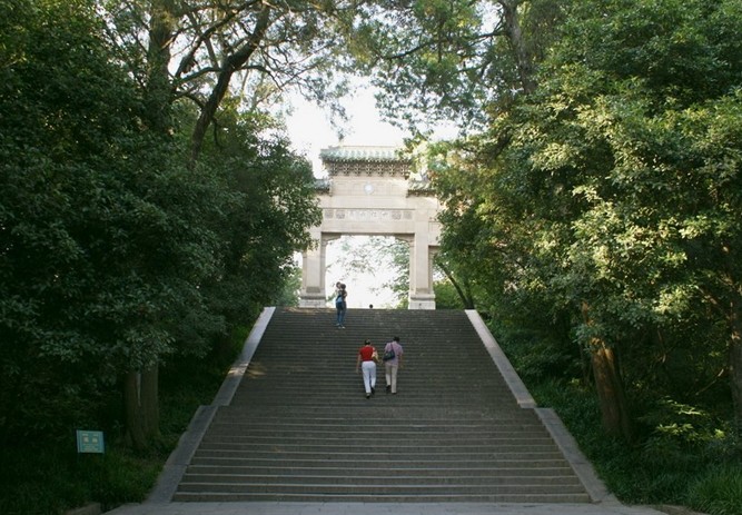 明清兩代,那里為規(guī)模宏大的東南名剎靈谷寺,后毀于戰(zhàn)火。民國時(shí)期在這里建陣亡將士公墓,新增正門、牌坊、松風(fēng)閣、靈谷塔等,至今保存完好?,F(xiàn)公園內(nèi)的靈谷寺、原為同治六年(1867年)建的龍神廟,規(guī)模雖小,卻藏有玄奘法師頂骨,極為珍貴。古靈谷寺保留下來的還有供奉無量壽佛的無量殿,因不施寸木也無梁椽,俗稱無梁殿,民國時(shí)期改作祭堂,現(xiàn)辟為辛亥名人蠟像館。靈谷深松處的譚延闿墓,墓前祭臺(tái)為北京圓明園的原物。