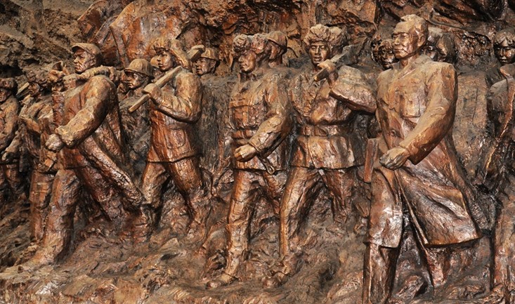 在建筑和布展上,鐵人王進(jìn)喜紀(jì)念館均體現(xiàn)了“厚重、大氣、質(zhì)樸、昂揚(yáng)、粗獷、豪放”的風(fēng)格。走進(jìn)紀(jì)念館序廳,版權(quán)所有山東聊城聊之旅國際旅行社有限公司,轉(zhuǎn)載必究!迎面是一組國內(nèi)最大的鑄銅雕像《石油魂》,它氣勢磅礴,真實(shí)生動地刻畫了以鐵人王進(jìn)喜為代表的英雄群體形象。