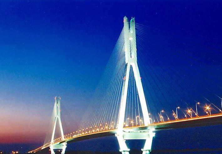 南京長(zhǎng)江二橋是國(guó)家“九五”重點(diǎn)建設(shè)項(xiàng)目,位于現(xiàn)南京長(zhǎng)江大橋下游11公里處,全長(zhǎng)21.337公里,由南、北汊大橋和南岸、八卦洲及北岸引線組成。其中:南汊大橋?yàn)殇撓淞盒崩瓨颍瑯蜷L(zhǎng)2938米,版權(quán)所有山東聊城聊之旅國(guó)際旅行社有限公司,轉(zhuǎn)載必究!主跨為628米,該跨徑目前居同類(lèi)橋型中“國(guó)內(nèi)第一,世界第三”;北汊大橋?yàn)殇摻罨炷令A(yù)應(yīng)力連續(xù)箱梁橋,橋長(zhǎng)2172米,主跨為3×165米,該跨徑在國(guó)內(nèi)亦居領(lǐng)先。全線還設(shè)有4座互通立交、4座特大橋、6座大橋。設(shè)計(jì)標(biāo)準(zhǔn):雙向六車(chē)道高速公路;設(shè)計(jì)速度:100公里/小時(shí);設(shè)計(jì)荷載:汽——超20,掛——120;路基寬33.5米,橋面寬32米(不含斜拉索錨固區(qū))。全線設(shè)有監(jiān)控、通訊、收費(fèi)、照明、動(dòng)靜態(tài)稱重等系統(tǒng),并設(shè)有南汊主橋景觀照明,南、北汊橋公園和八卦洲服務(wù)區(qū)。