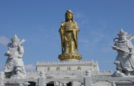 南海觀音露天銅像位于普陀山之東南的龍灣崗巔。菩薩臉如滿月,眉目清秀,左手托法輪,右手結(jié)無畏印,顯現(xiàn)大慈大悲相,光耀天日,壯麗無比。像高33米,重70余噸,乃當今觀音銅像之最,也是海天佛國的象征。版權(quán)所有聊城聊之旅旅行社有限公司,轉(zhuǎn)載必究!佛像基層是面積1000多平方的功德廳,上層供奉500尊形態(tài)各異的觀音銅像,下層大廳飾有觀音靈異故事的大型黃楊木雕和以普陀山景色為題材的彩玉浮雕,精美絕侖。