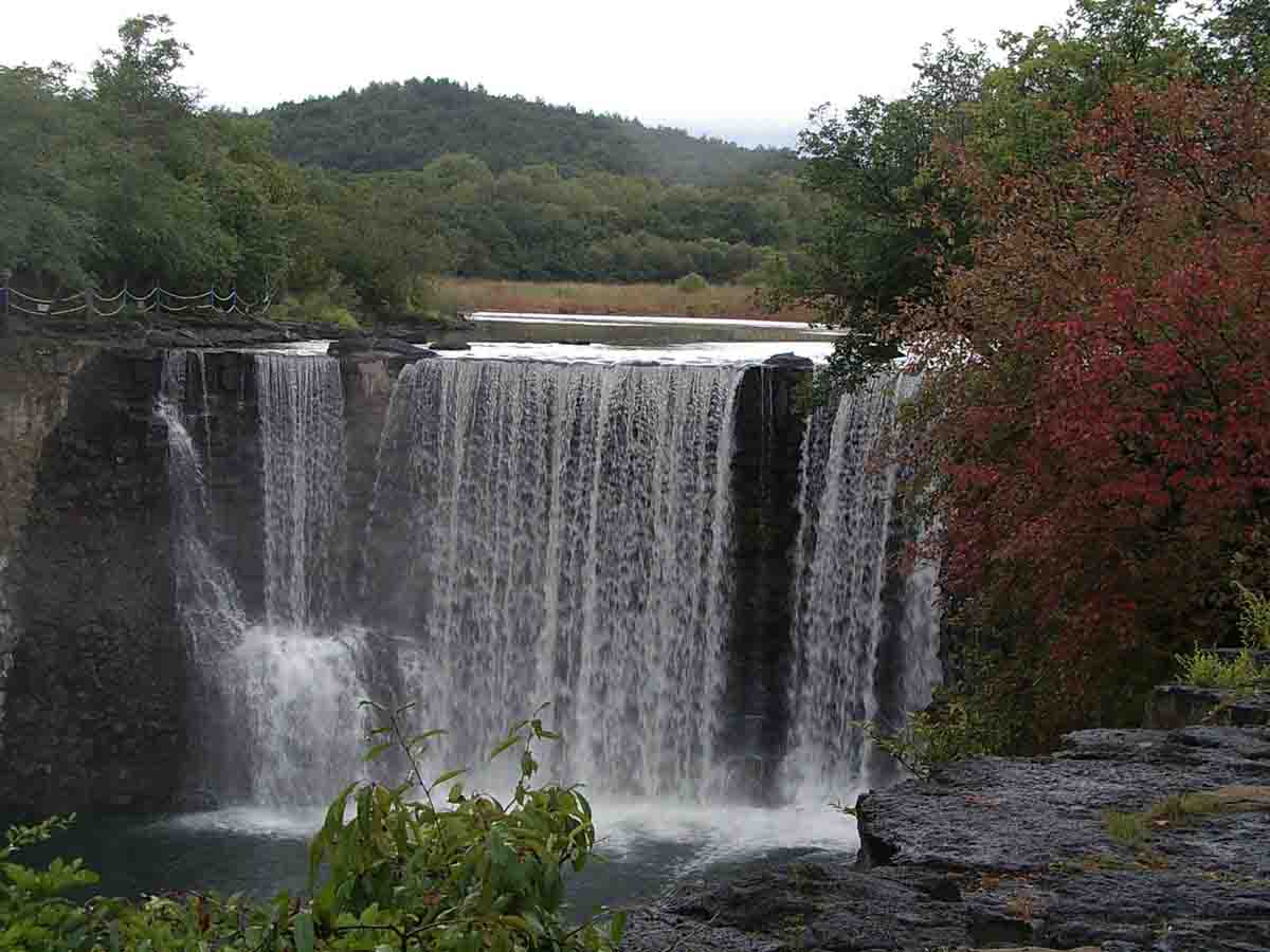 吊水樓瀑布,古時土著人名曰"發(fā)庫",位于湖之北端,距"鏡泊山莊"僅三公里。從"鏡泊山莊"乘車,沿著一條山路,便可抵達(dá)龍泉山腳下的冷食店"湖光閣"。由"湖光閣"向左轉(zhuǎn),駛進(jìn)盤山曲徑,通過急流上懸架的"飛虹橋",再穿越一段枝葉交錯的綠色長廊,一座古樸雅致的六角亭臺便出現(xiàn)在眼前。此時,瀑布瀉落的轟鳴之聲不絕于耳,撲面的微風(fēng)夾雜著一股股沁人的清新與甘甜。游人至此多于亭中小憩,然后步行穿過一片闊葉林,呼嘯奔騰、氣勢磅礴的"吊水樓瀑布"便映入眼簾。版權(quán)所有聊城聊之旅旅行社有限公司,轉(zhuǎn)載必究!吊水樓瀑布酷似聞名世界的"尼亞加拉大瀑布"。湖水在熔巖床面翻滾、泡哮,如千軍萬馬之勢向深潭沖來,然后從斷巖峭壁之上飛瀉直下,撲進(jìn)圓型甌穴之中。潭水浪花四濺,如浮云堆雪,白霧彌漫;又似銀河倒瀉,白練懸空。水聲震耳如有雷鳴。瀑布一般幅寬四十余米落差為十二米。雨季或汛期,瀑布呈現(xiàn)兩股或數(shù)股迭落,總幅寬達(dá)二百余米。