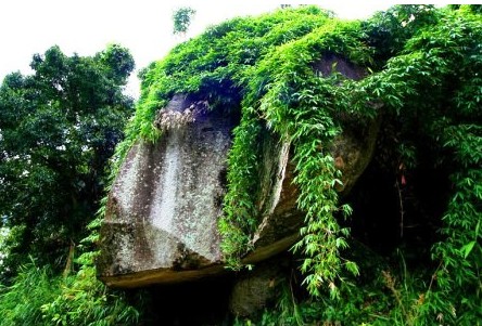 在黎母山頂,高丈余。大二丈,中間有東坡手書(shū)詩(shī)一首。近此壁裂開(kāi)二幅云。(《定安縣志》)